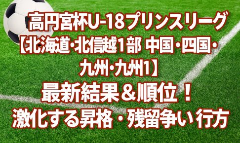 こんにちは! サッカーメモ、高円宮U18プリンスリーグです。 今回はプリンスリーグ北海道、北信越1部、中国、四国、九州1部の結果まとめです。 高円宮杯U-18プリンスリーグ【北海道・北信越1部・中国・四国・九州1部】最新…